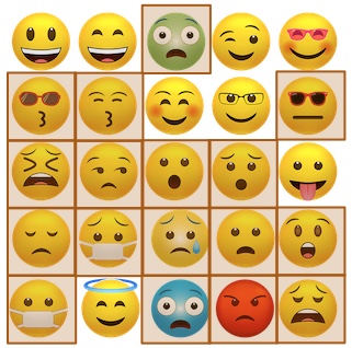 How many of the round faces are in brown boxes?