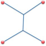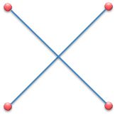 Pretend the round red blobs are tennis balls. Pretend the blue lines are stretchy strings.