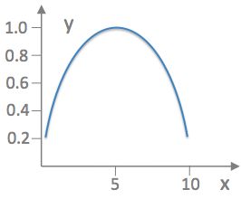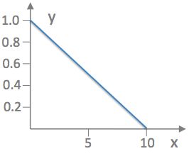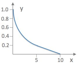 If y is the fraction of the white area of the square, which graph shows the y – x dependence correctly?