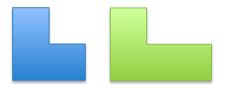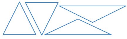 Pairs of identical rectangular strips are overlapped to form different shapes.